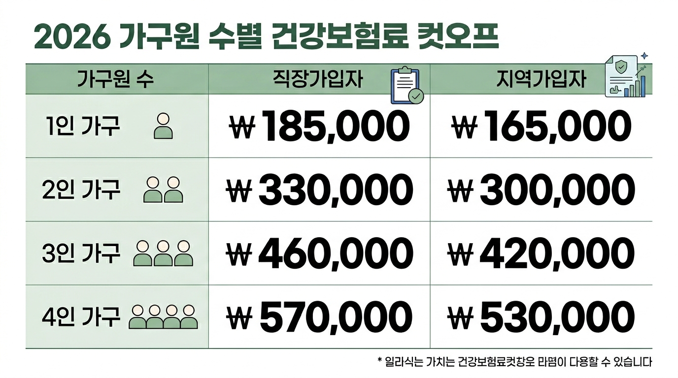 2. 2026년 가구원 수별 건보료 커트라인 (판정표)